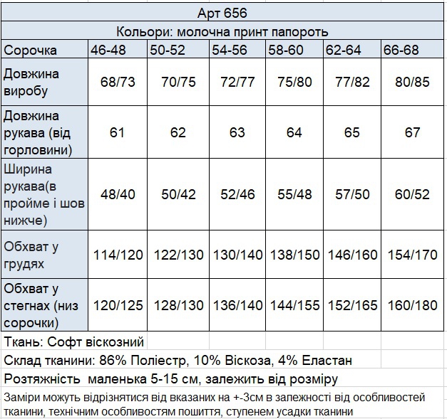 Розміри: 46-48, 50-52, 54-56, 58-60, 62-64, 66-68