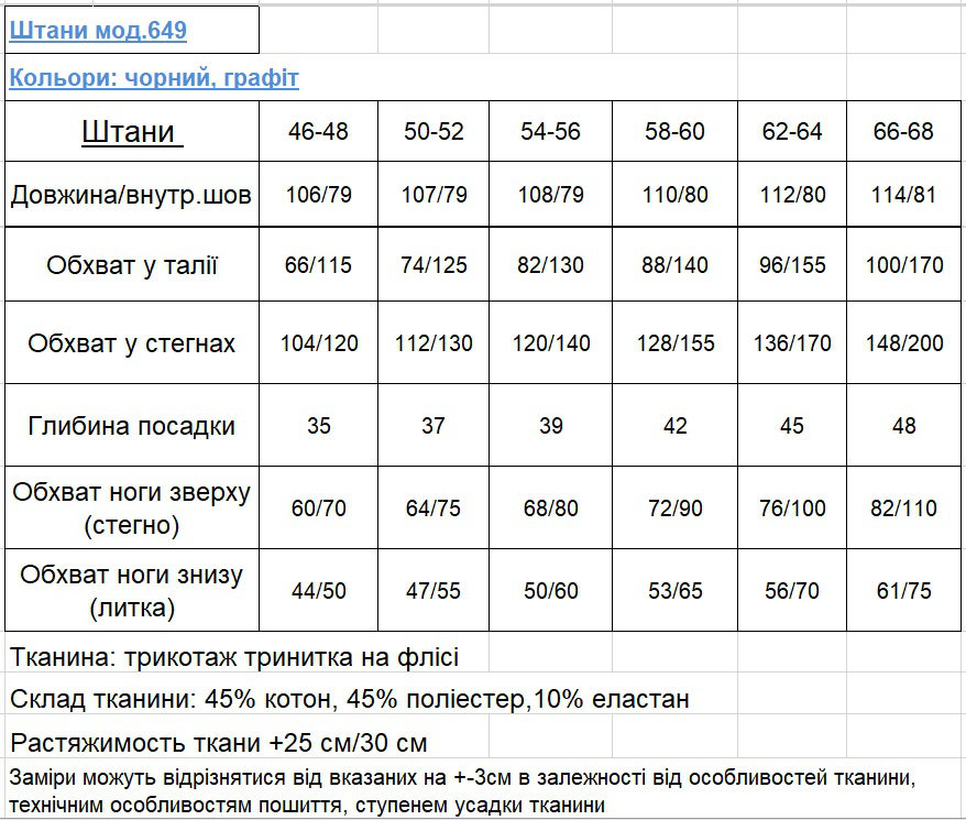 Дуже тепла зимова модель штанів. Штани з високою посадкою, прямого крою, мають бічні кишені. Тканина тепла та м'яка, приємна до тіла, практична в носінні, тримає форму. Добре зігріє у прохолодну пору року.