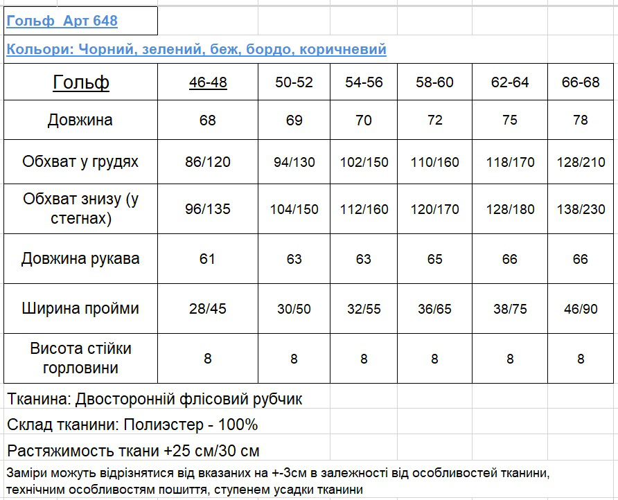 Гольф виконаний з теплої тканини, яка добре тягнеться. М'який та приємний до тіла. Не скочується. Тримає форму. Сезон Осінь-Зима.